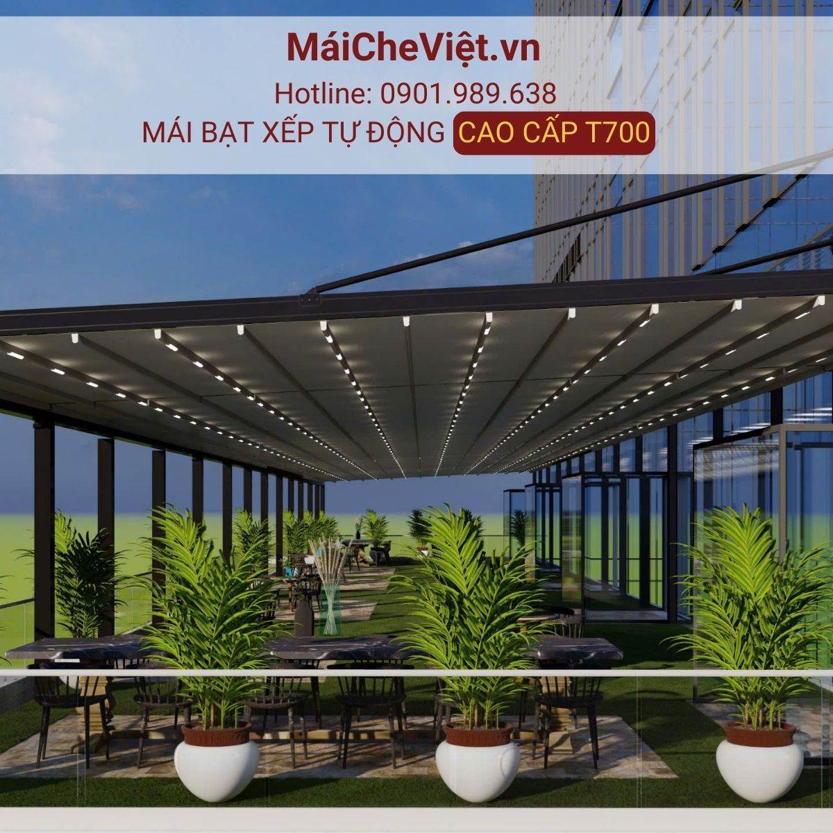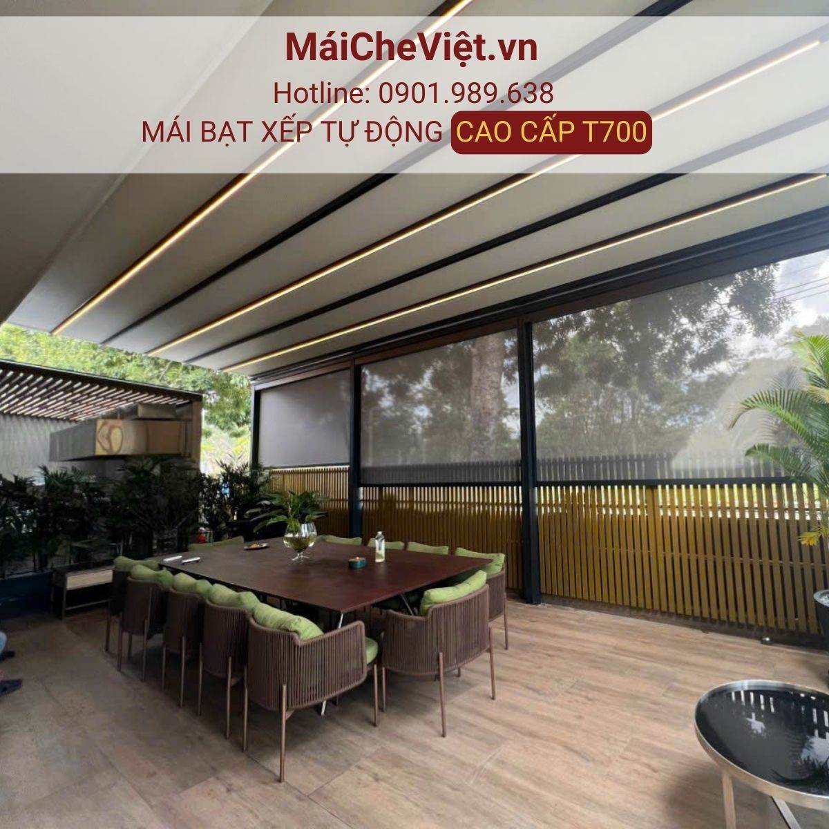 Nếu bạn muốn trải nghiệm sự khác biệt đẳng cấp từ mái bạt xếp tự động, hãy để T700 và đội ngũ MaiCheViet.vn đồng hành cùng bạn!